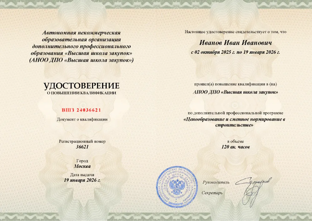 Повышение квалификации, 72 академических часа, 7 модулей: составление локальной сметы и расчет накладных расходов, работа со сметно-нормативными базами, виды строительства и расчет затрат, определение сметной стоимости материалов и техники, конъюнктурный анализ цен, особенности расчета стоимости монтажа оборудования и пусконаладочных работ, практические навыки составления смет в MS Excel методами БИМ и РМ. Онлайн-обучение в в Пскове с итоговой аттестацией.