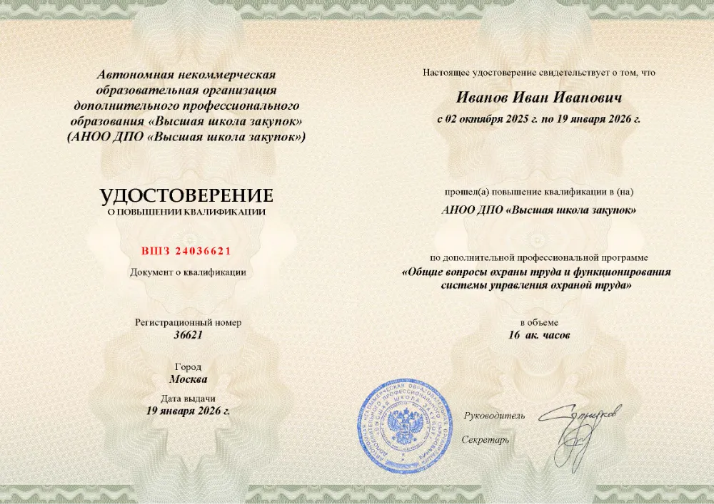 Повышение квалификации, 16 академических часов, 4 модуля: правовые основы и организация системы охраны труда, управление профессиональными рисками и оценка условий труда, обеспечение безопасных условий и социальные гарантии работникам, расследование несчастных случаев и внутренний аудит системы. Онлайн-обучение в в Пскове с итоговой аттестацией.