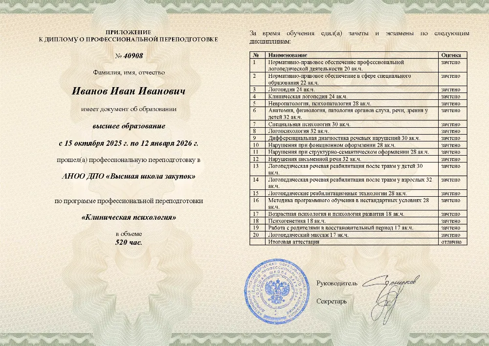 Профессиональная переподготовка, 520 академических часов, 20 модулей: нормативно-правовое обеспечение, основы невропатологии и специальной психологии, дифференциальная диагностика речевых нарушений, логопедические реабилитационные технологии, возрастная психология и психология развития, работа с семьями. Онлайн-обучение в в Пскове с итоговой аттестацией.